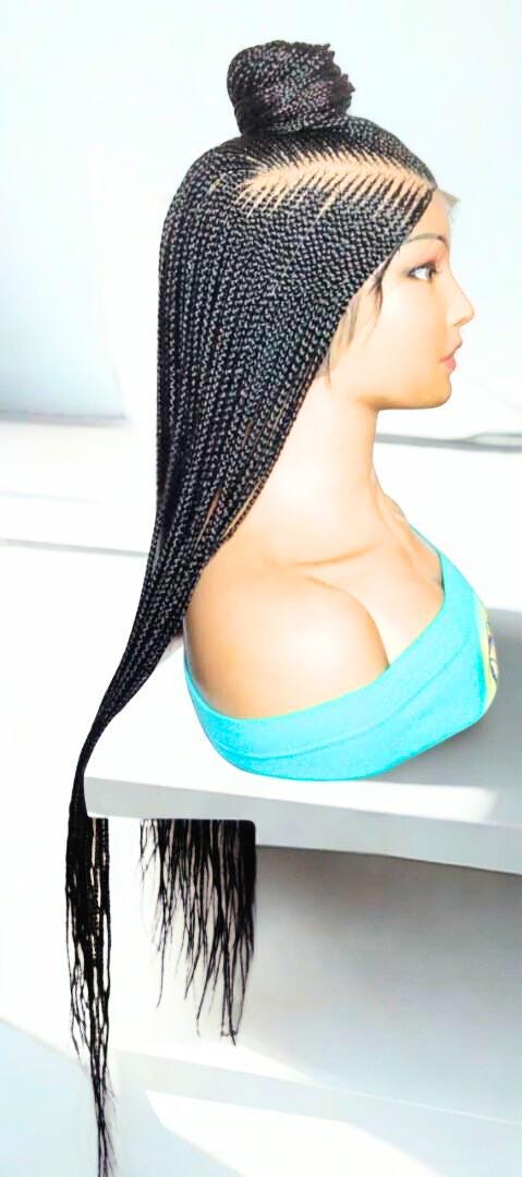 Black Braided Wig. Long Jumbo Cornrow Braids. Full Lace Baby Hair, Lemonade Braids.