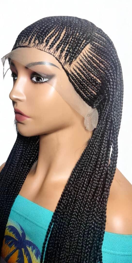 Each Braided Wig we offer are: HAND MADE - Skillfully crafted by hand to deliver unmatched quality. It’s the ideal protective style for any hair type. LIGHTWEIGHT & COMFORTABLE – Designed with a breathable Full Lace cap and adjustable elastics and hooks for a secure fit. The lightness makes it easy to wear all day without irritation. HIGH-QUALITY MATERIALS – Created using premium synthetic braiding hair extensions for long-lasting use. May use right color of Lace Wig and Grid Knot concealer, for a more natural look. REALISTIC LOOK – Its authentic natural look ensures you will stand out from the crowd. VERSATILE STYLE – Perfect for those who love to experiment with different looks, accessorize, and express their personality. Our wigs make bold statement, are a great addition to any collection, and can be worn confidently on a variety of occasions. Glue less wig; Cornrow Braided Wig; Banana Braids; Tribal Braids; Lemonade Braids; Tribal Braids; Fulani Braids; Fula F29