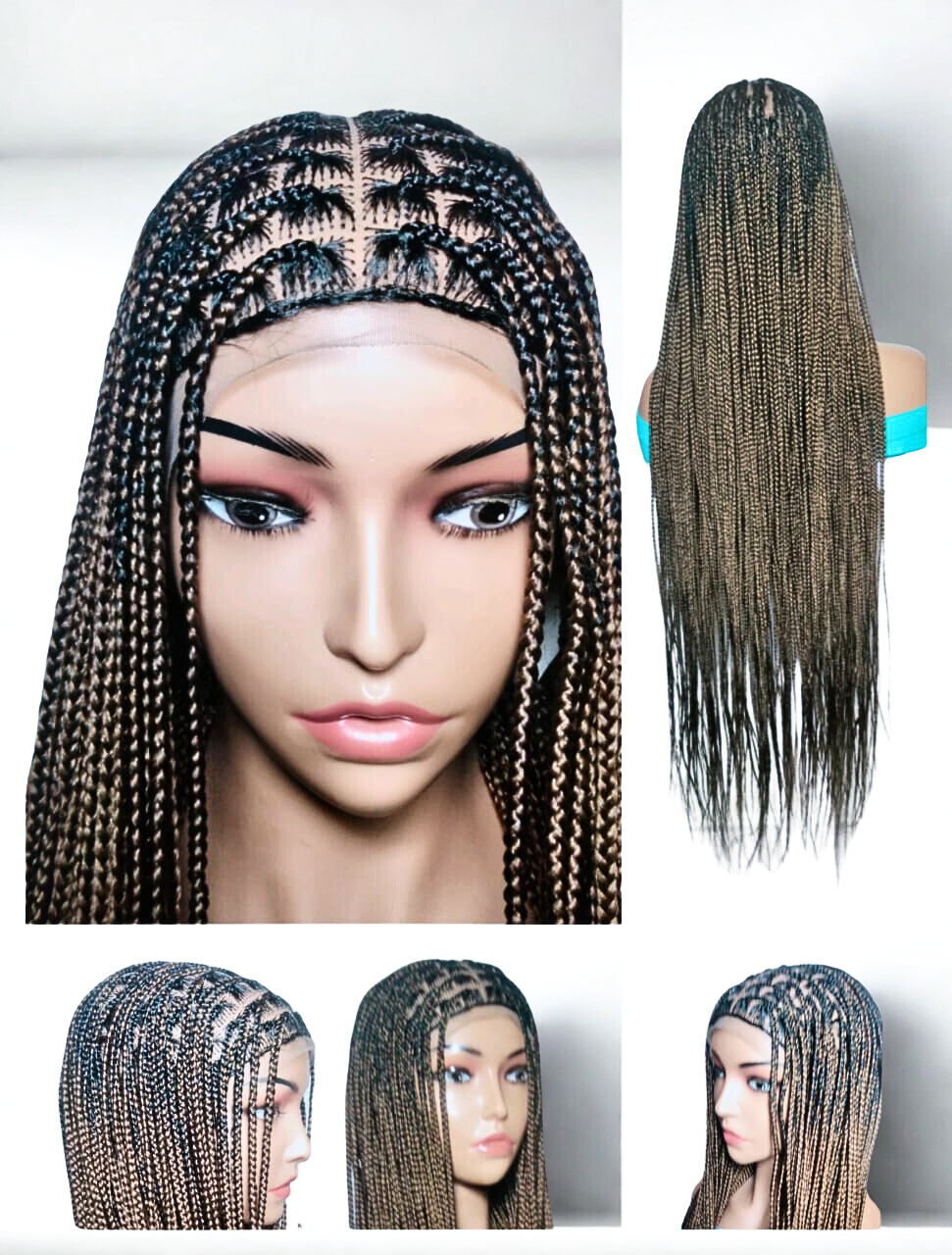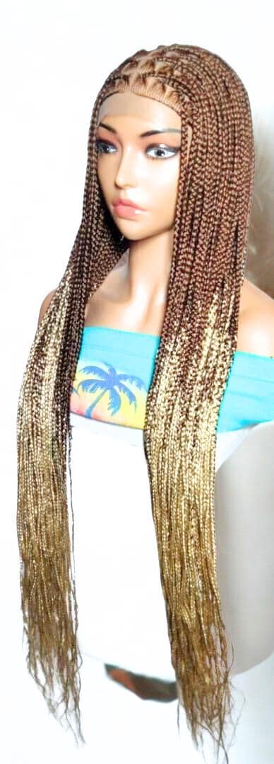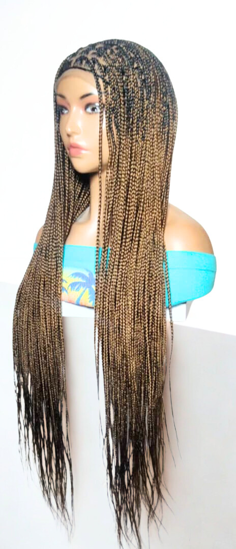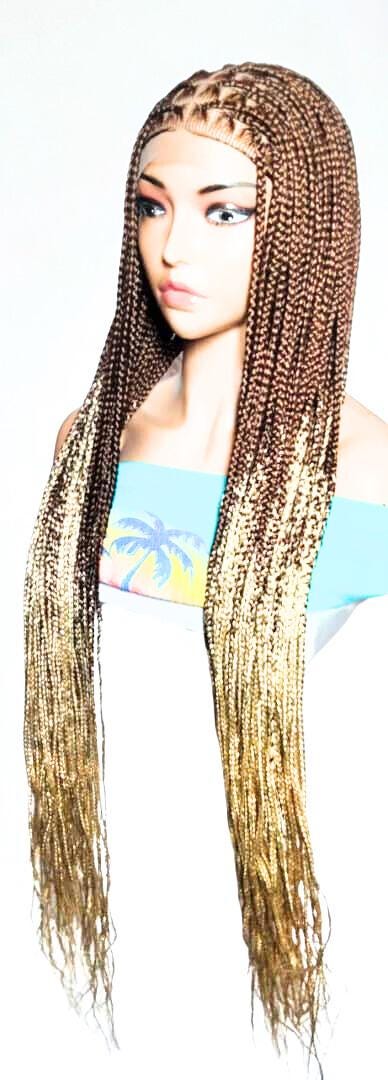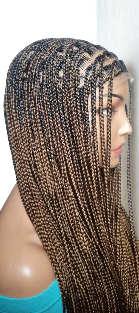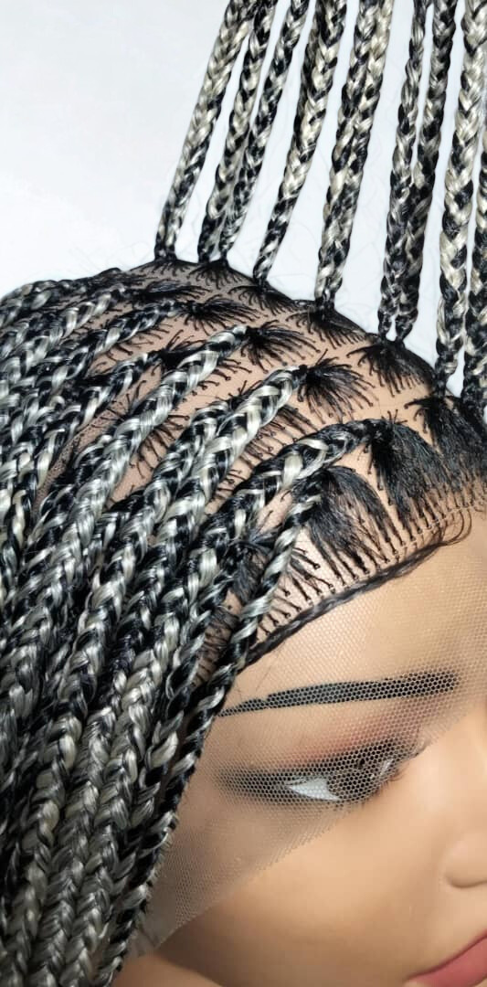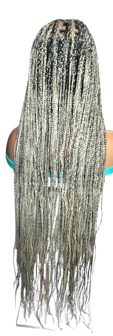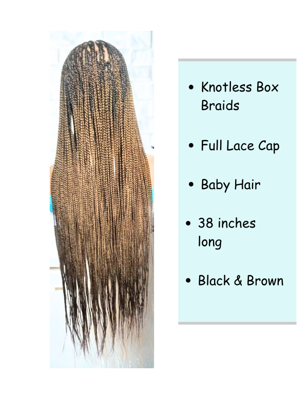 Each Braided Wig we offer are: HAND MADE - Skillfully crafted by hand to deliver unmatched quality. It’s the ideal protective style for any hair type. LIGHTWEIGHT & COMFORTABLE – Designed with a breathable Full Lace cap and adjustable elastics and hooks for a secure fit. The lightness makes it easy to wear all day without irritation. HIGH-QUALITY MATERIALS – Created using premium synthetic braiding hair extensions for long-lasting use. May use right color of Lace Wig and Grid Knot concealer, for a more natural look. REALISTIC LOOK – Its authentic natural look ensures you will stand out from the crowd. VERSATILE STYLE – Perfect for those who love to experiment with different looks, accessorize, and express their personality. Our wigs make bold statement, are a great addition to any collection, and can be worn confidently on a variety of occasions. Glue less wig; Knotless Box Braids G40, F23, H18