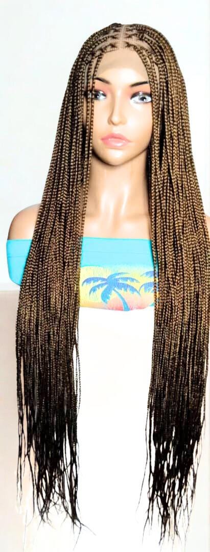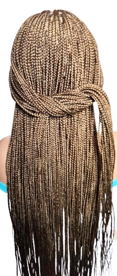 This beautiful handmade wig, made with synthetic hair extension, features intricate Knotless Box Braids